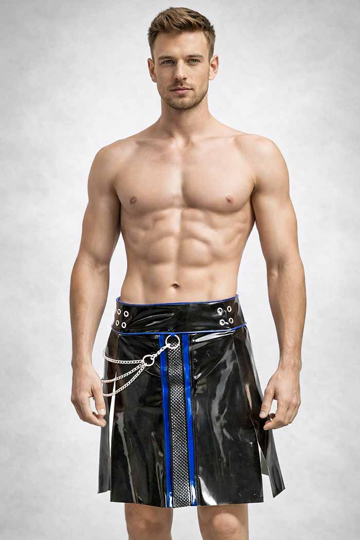Verstelbare latex kilt, dus past ook de eerste fetish feestjes in het nieuwe jaar.