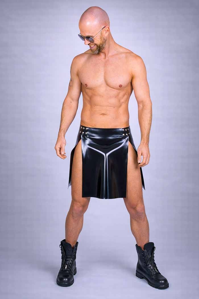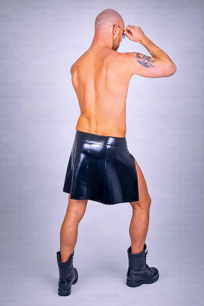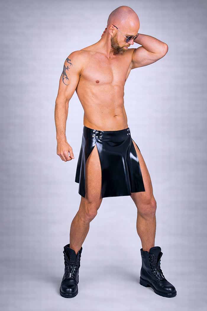 Verstelbare latex kilt, dus past ook de eerste fetish feestjes in het nieuwe jaar.